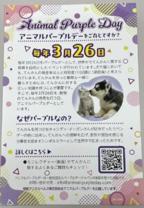 そこで当院でも、アニマルパープルデーの活動を行います。